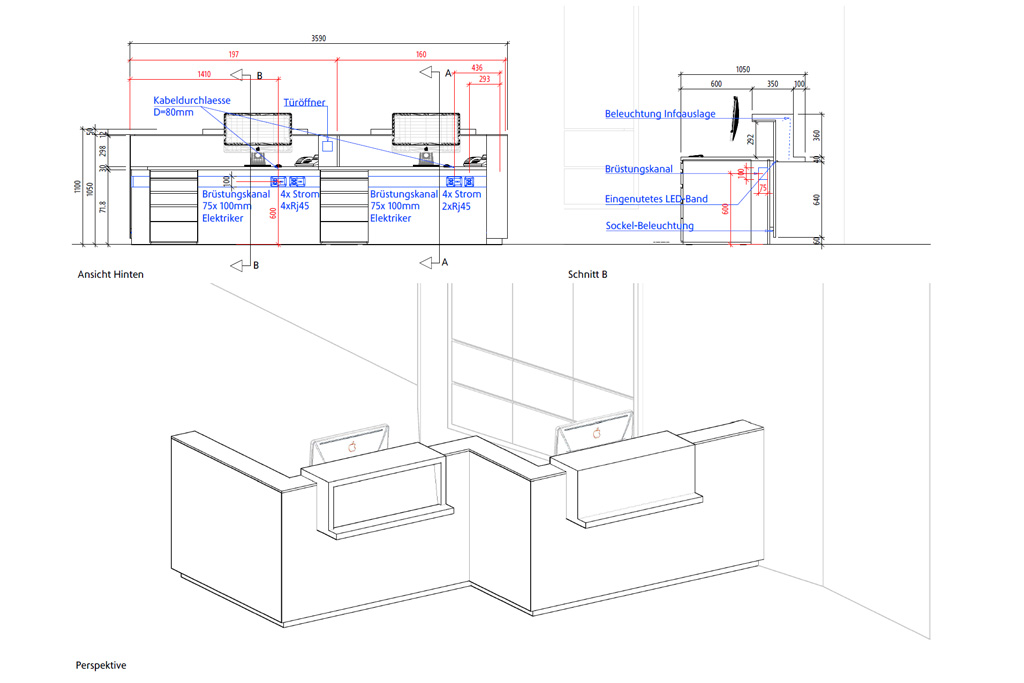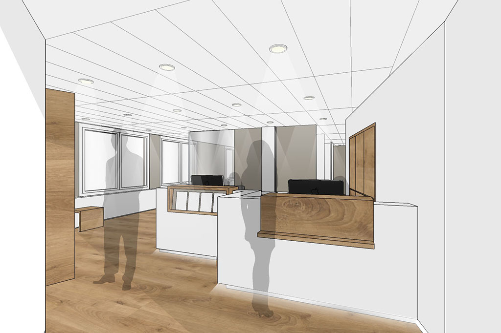 Bei seinem Projekt war die Herausforderung der zeitliche Ablauf. Seine Zeitvorgabe waren äusserst knapp, da wir zuerst ein Umnutzungsgesuch bei der Stadt Solothurn eingeben mussten. Dank dem Goodwill der Stadt Solothurn konnten wir bereits nach sechs Wochen mit dem Umbau beginnen, der sechs Wochen dauerte. Leider hatten wir noch mit Asbest im Gebäude zu tun, was uns Zeit kostete. Bei der Gestaltung der Praxis liess er uns freie Hand und wir konnten ihm mittels skizzierten Ideen unsere Ideen aufzeigen und das nun gezeigte Projekt unkompliziert planen und umsetzen.