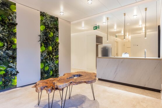 Ein besonderes Highlight der Gestaltung ist die Bepflanzung mit echten Pflanzen, die mumifiziert wurden, um Pflegeleichtigkeit mit natürlicher Ästhetik zu verbinden. Diese innovative Idee wurde massgeblich von Frau Dr. S. Safi inspiriert und unterstützt.