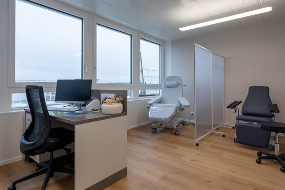 Wir erhielten den Auftrag, im 4. Obergeschoss die neue Praxis für Kardiologie zu gestalten und umzusetzen.